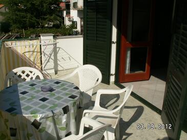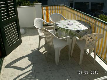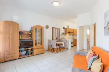 Ferienwohnung bietet Platz für 4 Gäste. Die Betten sind in Schlafzimmern, die es 1 gibt, und in Wohnzimmer, innerhalb einer Gesamtfläche von 43m2, angeordnet. Die Gäste haben eine eigene Terrasse zur Verfügung, auf der sie in warmen Sommernächten genießen können. Das Apartment bietet Meerblick. Es ist erlaubt, Speisen auf dem Gemeinschafts-Grill vorzubereiten.