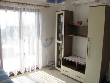 Ferienwohnung bietet Platz für 4 Gäste. Die Betten sind in Schlafzimmern, die es 1 gibt, und in Wohnzimmer, innerhalb einer Gesamtfläche von 29m2, angeordnet. Die Gäste haben eine eigene Terrasse zur Verfügung, auf der sie in warmen Sommernächten genießen können. Das Apartment bietet Meerblick. Es ist erlaubt, Speisen auf dem Gemeinschafts-Grill vorzubereiten.