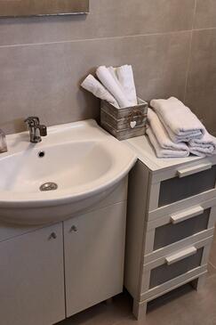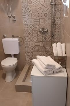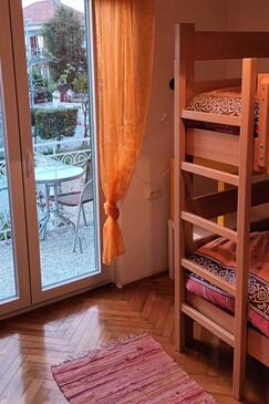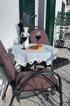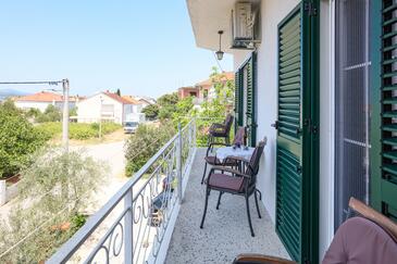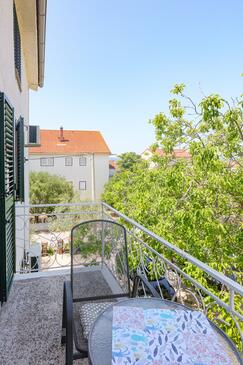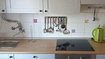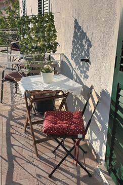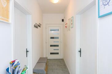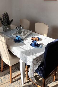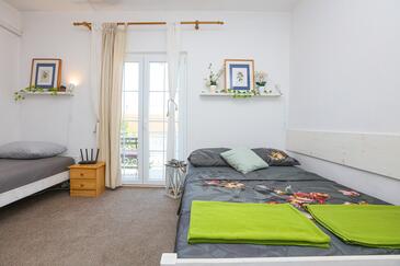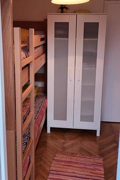 Ferienwohnung bietet Platz für 8 Gäste. Die Betten sind in Schlafzimmern, die es 3 gibt, innerhalb einer Gesamtfläche von 54m2, angeordnet. Die Gäste haben einen eigenen Balkon zur Verfügung, auf der sie in warmen Sommernächten genießen können. Das Apartment bietet Meerblick. Es ist erlaubt, Speisen auf dem Gemeinschafts-Grill vorzubereiten.