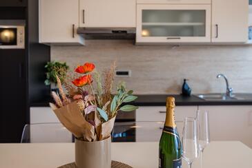 Ferienwohnung bietet Platz für 6 Gäste. Die Betten sind in Schlafzimmern, die es 2 gibt, und in Wohnzimmer, innerhalb einer Gesamtfläche von 46m2, angeordnet. Die Gäste haben einen eigenen Balkon zur Verfügung, auf der sie in warmen Sommernächten genießen können. Das Apartment bietet Meerblick.