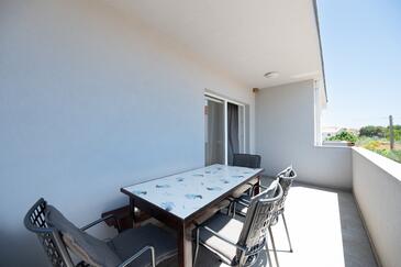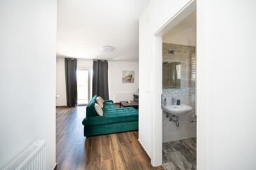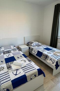 Ferienwohnung bietet Platz für 8 Gäste. Die Betten sind in Schlafzimmern, die es 3 gibt, und in Wohnzimmer, innerhalb einer Gesamtfläche von 86m2, angeordnet. Die Gäste haben eine eigene Terrasse zur Verfügung, auf der sie in warmen Sommernächten genießen können. Es ist erlaubt, Speisen auf dem Gemeinschafts-Grill vorzubereiten.