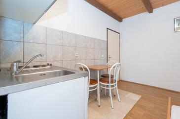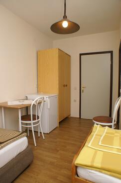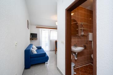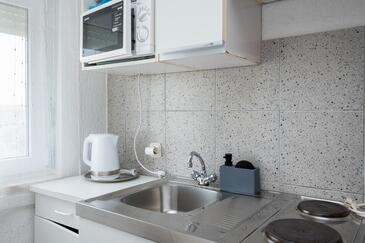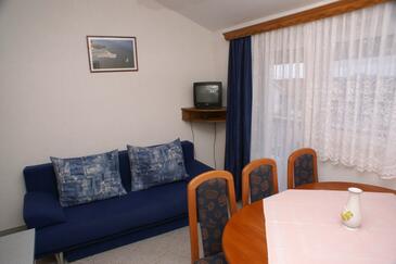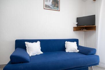 Ferienwohnung bietet Platz für 7 Gäste. Die Betten sind in Schlafzimmern, die es 2 gibt, und in Wohnzimmer, innerhalb einer Gesamtfläche von 38m2, angeordnet. Die Gäste haben einen eigenen Balkon zur Verfügung, auf der sie in warmen Sommernächten genießen können. Es ist erlaubt, Speisen auf dem Gemeinschafts-Grill vorzubereiten.