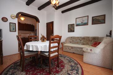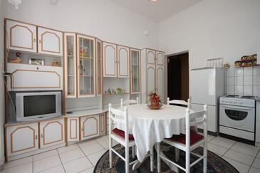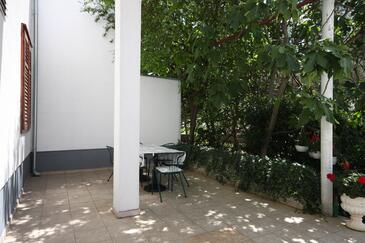Ferienwohnung bietet Platz für 5 Gäste. Die Betten sind in Schlafzimmern, die es 2 gibt, innerhalb einer Gesamtfläche von 55m2, angeordnet. Die Gäste haben eine eigene Terrasse zur Verfügung, auf der sie in warmen Sommernächten genießen können. Es ist erlaubt, Speisen auf dem Gemeinschafts-Grill vorzubereiten.