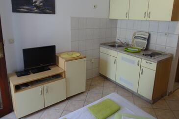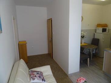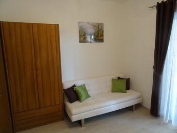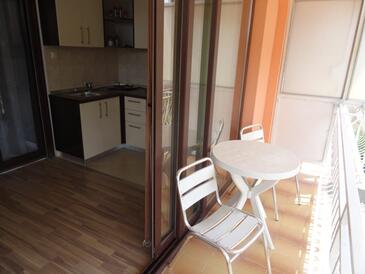 Ferienwohnung bietet Platz für 5 Gäste. Die Betten sind in Schlafzimmern, die es 2 gibt, innerhalb einer Gesamtfläche von 43m2, angeordnet. Die Gäste haben einen eigenen Balkon zur Verfügung, auf der sie in warmen Sommernächten genießen können. Es ist erlaubt, Speisen auf dem Gemeinschafts-Grill vorzubereiten.