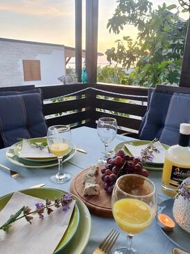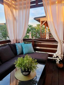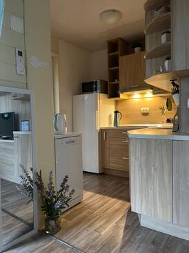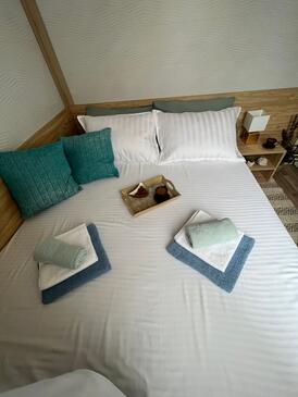 Haus bietet Platz für 4 Gäste. Die Betten sind in Schlafzimmern, die es 2 gibt, innerhalb einer Gesamtfläche von 33m2, angeordnet. Die Gäste haben eine eigene Terrasse zur Verfügung, auf der sie in warmen Sommernächten genießen können. Das Haus bietet Meerblick. Für vollen Genuss und Entspannung gibt es einen privaten Grill für Gäste dieser Unterkunft. In der Unterkunftseinheit besteht die Möglichkeit des Mitbringens von Haustieren gegen Aufpreis.