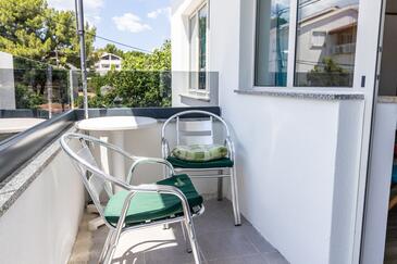 Ferienwohnung bietet Platz für 5 Gäste. Die Betten sind in Schlafzimmern, die es 1 gibt, und in Wohnzimmer, innerhalb einer Gesamtfläche von 30m2, angeordnet. Die Gäste haben eine eigene Terrasse zur Verfügung, auf der sie in warmen Sommernächten genießen können. Das Apartment bietet Meerblick. Es ist erlaubt, Speisen auf dem Gemeinschafts-Grill vorzubereiten.
