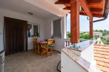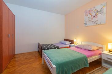 Ferienwohnung bietet Platz für 5 Gäste. Die Betten sind in Schlafzimmern, die es 2 gibt, innerhalb einer Gesamtfläche von 51m2, angeordnet. Die Gäste haben eine eigene Terrasse zur Verfügung, auf der sie in warmen Sommernächten genießen können. Es ist erlaubt, Speisen auf dem Gemeinschafts-Grill vorzubereiten.