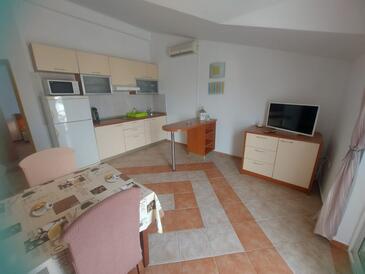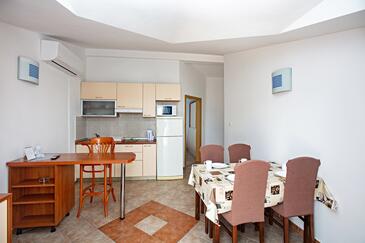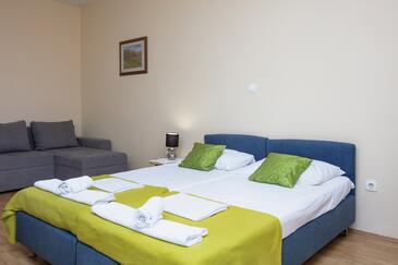 Ferienwohnung bietet Platz für 2 Gäste. Die Betten sind in Schlafzimmern, die es 1 gibt, innerhalb einer Gesamtfläche von 35m2, angeordnet. Die Gäste haben eine eigene Terrasse zur Verfügung, auf der sie in warmen Sommernächten genießen können. Es ist erlaubt, Speisen auf dem Gemeinschafts-Grill vorzubereiten.