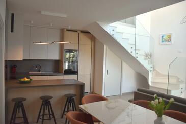 Haus bietet Platz für 6 Gäste. Die Betten sind in Schlafzimmern, die es 3 gibt, innerhalb einer Gesamtfläche von 133m2, angeordnet. Die Gäste haben eine eigene Terrasse zur Verfügung, auf der sie in warmen Sommernächten genießen können. Das Haus bietet Meerblick. Für vollen Genuss und Entspannung gibt es einen privaten Grill für Gäste dieser Unterkunft.
