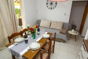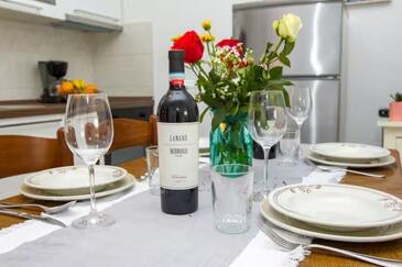 Ferienwohnung bietet Platz für 4 Gäste. Die Betten sind in Schlafzimmern, die es 1 gibt, und in Wohnzimmer, innerhalb einer Gesamtfläche von 28m2, angeordnet. Die Gäste haben eine eigene Terrasse zur Verfügung, auf der sie in warmen Sommernächten genießen können. Das Apartment bietet Meerblick. In der Unterkunftseinheit besteht die Möglichkeit des Mitbringens von Haustieren gegen Aufpreis.