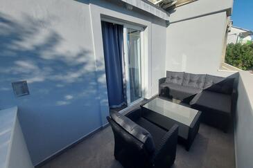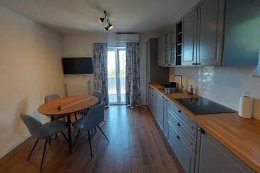 Ferienwohnung bietet Platz für 4 Gäste. Die Betten sind in Schlafzimmern, die es 1 gibt, und in Wohnzimmer, innerhalb einer Gesamtfläche von 30m2, angeordnet. Die Gäste haben einen eigenen Balkon zur Verfügung, auf der sie in warmen Sommernächten genießen können. Das Apartment bietet Meerblick. Es ist erlaubt, Speisen auf dem Gemeinschafts-Grill vorzubereiten.
