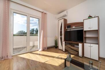 Ferienwohnung bietet Platz für 6 Gäste. Die Betten sind in Schlafzimmern, die es 3 gibt, innerhalb einer Gesamtfläche von 150m2, angeordnet. Die Gäste haben eine eigene Terrasse zur Verfügung, auf der sie in warmen Sommernächten genießen können. Es ist erlaubt, Speisen auf dem Gemeinschafts-Grill vorzubereiten.