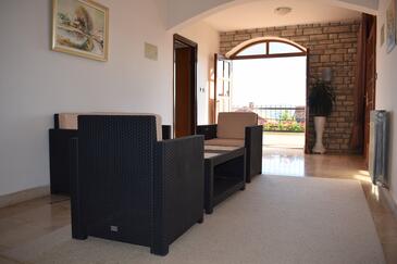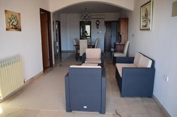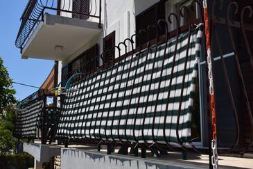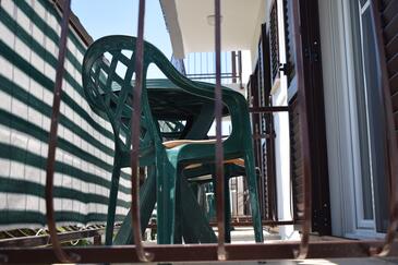 Ferienwohnung bietet Platz für 8 Gäste. Die Betten sind in Schlafzimmern, die es 3 gibt, und in Wohnzimmer, innerhalb einer Gesamtfläche von 105m2, angeordnet. Die Gäste haben einen eigenen Balkon zur Verfügung, auf der sie in warmen Sommernächten genießen können. Das Apartment bietet Meerblick. Es ist erlaubt, Speisen auf dem Gemeinschafts-Grill vorzubereiten.