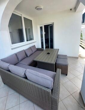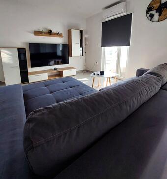 Ferienwohnung bietet Platz für 8 Gäste. Die Betten sind in Schlafzimmern, die es 3 gibt, und in Wohnzimmer, innerhalb einer Gesamtfläche von 90m2, angeordnet. Die Gäste haben eine eigene Terrasse zur Verfügung, auf der sie in warmen Sommernächten genießen können. Es ist erlaubt, Speisen auf dem Gemeinschafts-Grill vorzubereiten.