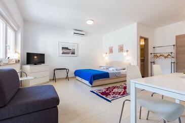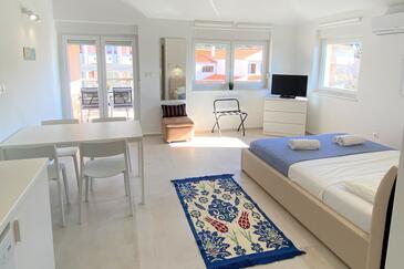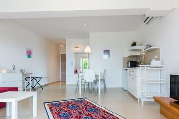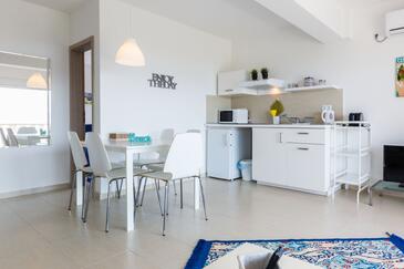 Ferienwohnung bietet Platz für 4 Gäste. Die Betten sind in Schlafzimmern, die es 2 gibt, innerhalb einer Gesamtfläche von 53m2, angeordnet. Die Gäste haben eine eigene Terrasse zur Verfügung, auf der sie in warmen Sommernächten genießen können. Das Apartment bietet Meerblick. Während ihres Aufenthalts können Gäste das gemeinsam zur Nutzung stehende Schwimmbad benutzen.