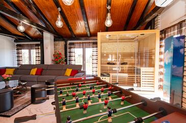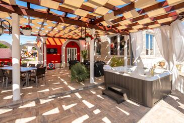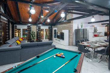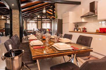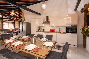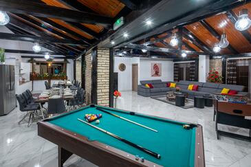 Haus bietet Platz für 16 Gäste. Die Betten sind in Schlafzimmern, die es 8 gibt, innerhalb einer Gesamtfläche von 289m2, angeordnet. Die Gäste haben eine eigene Terrasse zur Verfügung, auf der sie in warmen Sommernächten genießen können. Für vollen Genuss und Entspannung gibt es einen privaten Grill für Gäste dieser Unterkunft. Während ihres Aufenthalts können sich Gäste im privaten Schwimmbad entspannen.