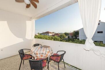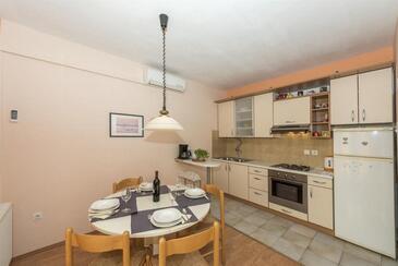 Ferienwohnung bietet Platz für 4 Gäste. Die Betten sind in Schlafzimmern, die es 2 gibt, innerhalb einer Gesamtfläche von 47m2, angeordnet. Die Gäste haben eine eigene Terrasse zur Verfügung, auf der sie in warmen Sommernächten genießen können. Das Apartment bietet Meerblick. Es ist erlaubt, Speisen auf dem Gemeinschafts-Grill vorzubereiten.