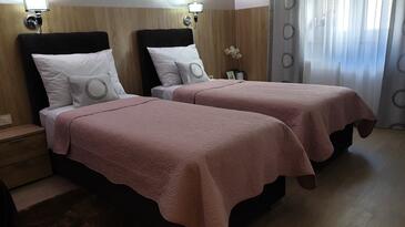 Zimmer bietet Platz für 2 Gäste. Die Betten sind in Schlafzimmern, die es 1 gibt, innerhalb einer Gesamtfläche von 15m2, angeordnet. Die reservierte Unterkunftseinheit hat keinen Balkon und keine Terrasse. Die reservierte Unterkunftseinheit ist ein Zimmer mit eigenem Badezimmer ohne die Möglichkeit der Nutzung einer Küche.