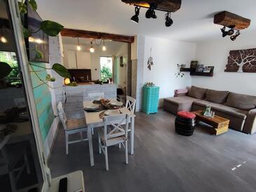 Ferienwohnung bietet Platz für 4 Gäste. Die Betten sind in Schlafzimmern, die es 1 gibt, und in Wohnzimmer, innerhalb einer Gesamtfläche von 59m2, angeordnet. Die Gäste haben eine eigene Terrasse zur Verfügung, auf der sie in warmen Sommernächten genießen können. Es ist erlaubt, Speisen auf dem Gemeinschafts-Grill vorzubereiten. In der Unterkunftseinheit besteht die Möglichkeit des Mitbringens von Haustieren gegen Aufpreis.