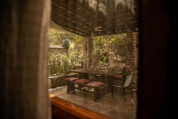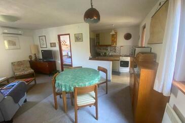 Ferienwohnung bietet Platz für 5 Gäste. Die Betten sind in Schlafzimmern, die es 2 gibt, und in Wohnzimmer, innerhalb einer Gesamtfläche von 60m2, angeordnet. Die Gäste haben eine eigene Terrasse zur Verfügung, auf der sie in warmen Sommernächten genießen können. Für vollen Genuss und Entspannung gibt es einen privaten Grill für Gäste dieser Unterkunft. In der Unterkunftseinheit besteht die Möglichkeit des Mitbringens von Haustieren, und die Dienstleistung ist im Preis der Unterkunft enthalten.