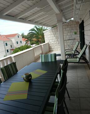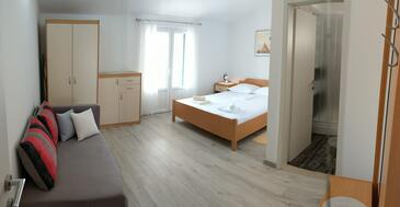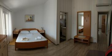 Ferienwohnung bietet Platz für 4 Gäste. Die Betten sind in Schlafzimmern, die es 2 gibt, innerhalb einer Gesamtfläche von 43m2, angeordnet. Die Gäste haben eine eigene Terrasse zur Verfügung, auf der sie in warmen Sommernächten genießen können.