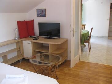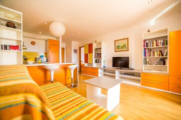 Ferienwohnung bietet Platz für 4 Gäste. Die Betten sind in Schlafzimmern, die es 2 gibt, innerhalb einer Gesamtfläche von 48m2, angeordnet. Die Gäste haben einen eigenen Balkon zur Verfügung, auf der sie in warmen Sommernächten genießen können. Das Apartment bietet Meerblick.