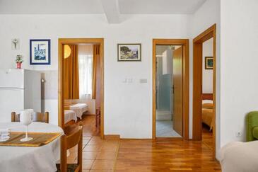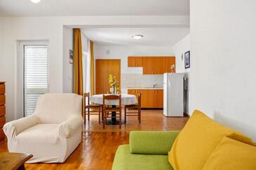 Ferienwohnung bietet Platz für 6 Gäste. Die Betten sind in Schlafzimmern, die es 2 gibt, und in Wohnzimmer, innerhalb einer Gesamtfläche von 45m2, angeordnet. Die Gäste haben eine eigene Terrasse zur Verfügung, auf der sie in warmen Sommernächten genießen können.
