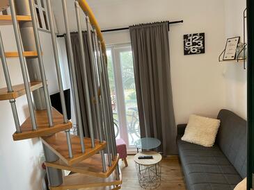 Haus bietet Platz für 4 Gäste. Die Betten sind in Schlafzimmern, die es 2 gibt, innerhalb einer Gesamtfläche von 27m2, angeordnet. Die Gäste haben eine eigene Terrasse zur Verfügung, auf der sie in warmen Sommernächten genießen können. Das Haus bietet Meerblick. Für vollen Genuss und Entspannung gibt es einen privaten Grill für Gäste dieser Unterkunft.