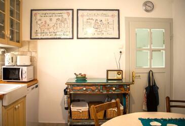 Haus bietet Platz für 6 Gäste. Die Betten sind in Schlafzimmern, die es 3 gibt, innerhalb einer Gesamtfläche von 100m2, angeordnet. Die Gäste haben eine eigene Terrasse zur Verfügung, auf der sie in warmen Sommernächten genießen können. Für vollen Genuss und Entspannung gibt es einen privaten Grill für Gäste dieser Unterkunft.