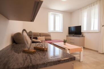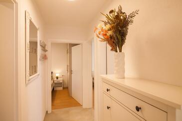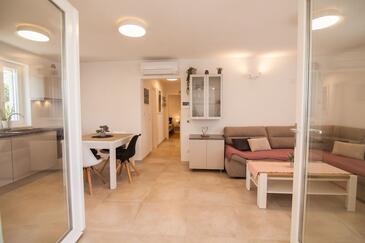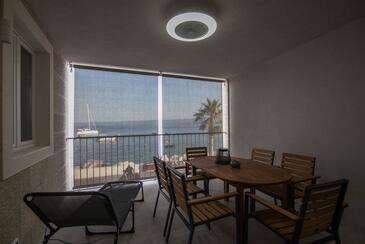 Ferienwohnung bietet Platz für 6 Gäste. Die Betten sind in Schlafzimmern, die es 3 gibt, innerhalb einer Gesamtfläche von 77m2, angeordnet. Die Gäste haben eine eigene Terrasse zur Verfügung, auf der sie in warmen Sommernächten genießen können. Das Apartment bietet Meerblick. Für vollen Genuss und Entspannung gibt es einen privaten Grill für Gäste dieser Unterkunft.