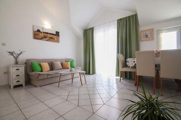 Ferienwohnung bietet Platz für 3 Gäste. Die Betten sind in Schlafzimmern, die es 1 gibt, und in Wohnzimmer, innerhalb einer Gesamtfläche von 30m2, angeordnet. Die Gäste haben eine eigene Terrasse zur Verfügung, auf der sie in warmen Sommernächten genießen können.