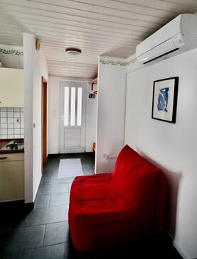 Ferienwohnung bietet Platz für 2 Gäste. Die Betten sind in Schlafzimmern, die es 1 gibt, innerhalb einer Gesamtfläche von 31m2, angeordnet. Die Gäste haben einen eigenen Balkon zur Verfügung, auf der sie in warmen Sommernächten genießen können. Das Apartment bietet Meerblick. Es ist erlaubt, Speisen auf dem Gemeinschafts-Grill vorzubereiten.