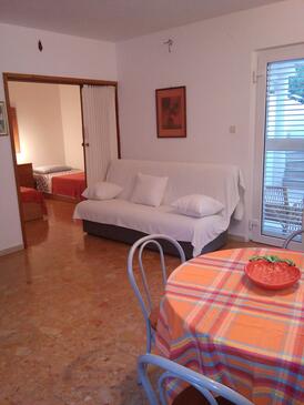 Ferienwohnung bietet Platz für 4 Gäste. Die Betten sind in Schlafzimmern, die es 2 gibt, innerhalb einer Gesamtfläche von 39m2, angeordnet. Die Gäste haben eine eigene Terrasse zur Verfügung, auf der sie in warmen Sommernächten genießen können. Durch die Terrasse der gebuchten Unterkunftseinheit gehen auch andere Gäste oder Vermieter.
