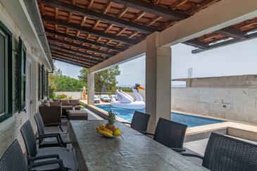 Haus bietet Platz für 8 Gäste. Die Betten sind in Schlafzimmern, die es 4 gibt, innerhalb einer Gesamtfläche von 94m2, angeordnet. Die Gäste haben eine eigene Terrasse zur Verfügung, auf der sie in warmen Sommernächten genießen können. Für vollen Genuss und Entspannung gibt es einen privaten Grill für Gäste dieser Unterkunft. Während ihres Aufenthalts können sich Gäste im privaten Schwimmbad entspannen. In der Unterkunftseinheit besteht die Möglichkeit des Mitbringens von Haustieren gegen Aufpreis. Räume der gebuchten Unterkunftseinheit werden nicht in eine Ganze verbunden.