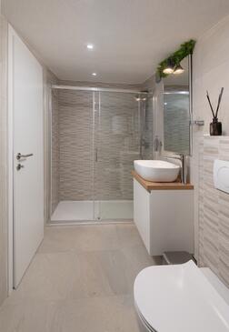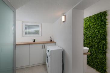 Haus bietet Platz für 14 Gäste. Die Betten sind in Schlafzimmern, die es 5 gibt, und in Wohnzimmer, innerhalb einer Gesamtfläche von 218m2, angeordnet. Die Gäste haben eine eigene Terrasse zur Verfügung, auf der sie in warmen Sommernächten genießen können. Das Haus bietet Meerblick. Für vollen Genuss und Entspannung gibt es einen privaten Grill für Gäste dieser Unterkunft. Während ihres Aufenthalts können sich Gäste im privaten Schwimmbad entspannen. Räume der gebuchten Unterkunftseinheit werden nicht in eine Ganze verbunden. Unterkunftseinheit hat Räume, die von dem Rest der Einheit abgetrennt werden. In der gebuchten Unterkunftseinheit zahlt man am Ort ein Depositum ( der Preis ist an der Internetseite angeführt ).