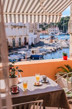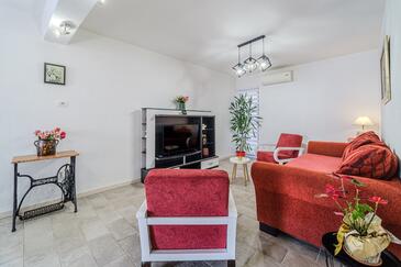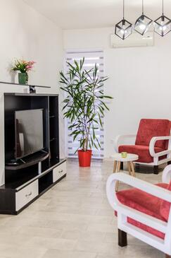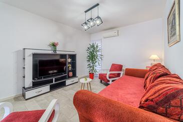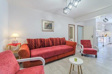 Ferienwohnung bietet Platz für 5 Gäste. Die Betten sind in Schlafzimmern, die es 2 gibt, und in Wohnzimmer, innerhalb einer Gesamtfläche von 70m2, angeordnet. Die Gäste haben eine eigene Terrasse zur Verfügung, auf der sie in warmen Sommernächten genießen können. Das Apartment bietet Meerblick.