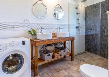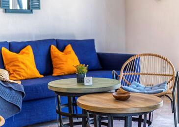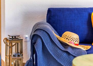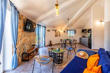 Haus bietet Platz für 6 Gäste. Die Betten sind in Schlafzimmern, die es 2 gibt, und in Wohnzimmer, innerhalb einer Gesamtfläche von 72m2, angeordnet. Die Gäste haben eine eigene Terrasse zur Verfügung, auf der sie in warmen Sommernächten genießen können. Das Haus bietet Meerblick. Es ist erlaubt, Speisen auf dem Gemeinschafts-Grill vorzubereiten. Während ihres Aufenthalts können sich Gäste im privaten Schwimmbad entspannen. In der Unterkunftseinheit besteht die Möglichkeit des Mitbringens von Haustieren gegen Aufpreis.