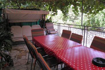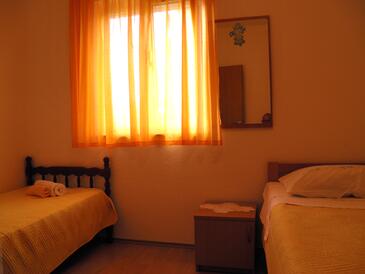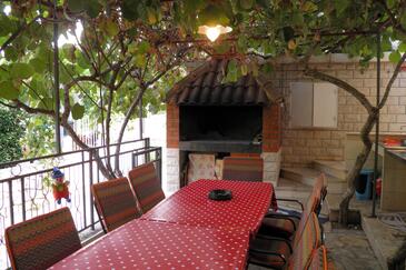 Ferienwohnung bietet Platz für 6 Gäste. Die Betten sind in Schlafzimmern, die es 3 gibt, innerhalb einer Gesamtfläche von 57m2, angeordnet. Die Gäste haben eine eigene Terrasse zur Verfügung, auf der sie in warmen Sommernächten genießen können. Es ist erlaubt, Speisen auf dem Gemeinschafts-Grill vorzubereiten.