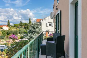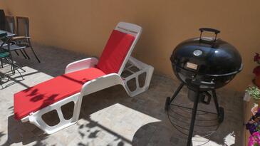 Ferienwohnung bietet Platz für 6 Gäste. Die Betten sind in Schlafzimmern, die es 2 gibt, und in Wohnzimmer, innerhalb einer Gesamtfläche von 76m2, angeordnet. Die Gäste haben eine eigene Terrasse zur Verfügung, auf der sie in warmen Sommernächten genießen können. Das Apartment bietet Meerblick. Es ist erlaubt, Speisen auf dem Gemeinschafts-Grill vorzubereiten.
