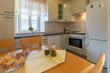 Ferienwohnung bietet Platz für 4 Gäste. Die Betten sind in Schlafzimmern, die es 2 gibt, innerhalb einer Gesamtfläche von 46m2, angeordnet. Die Gäste haben eine eigene Terrasse zur Verfügung, auf der sie in warmen Sommernächten genießen können. Es ist erlaubt, Speisen auf dem Gemeinschafts-Grill vorzubereiten.
