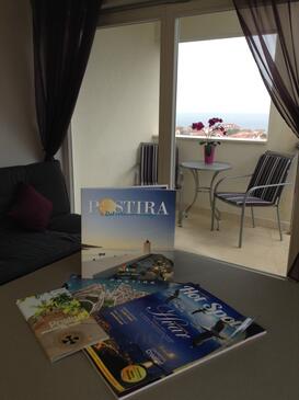 Ferienwohnung bietet Platz für 3 Gäste. Die Betten sind in Schlafzimmern, die es 1 gibt, und in Wohnzimmer, innerhalb einer Gesamtfläche von 36m2, angeordnet. Die Gäste haben einen eigenen Balkon zur Verfügung, auf der sie in warmen Sommernächten genießen können. Das Apartment bietet Meerblick. In der Unterkunftseinheit besteht die Möglichkeit des Mitbringens von Haustieren, und die Dienstleistung ist im Preis der Unterkunft enthalten.