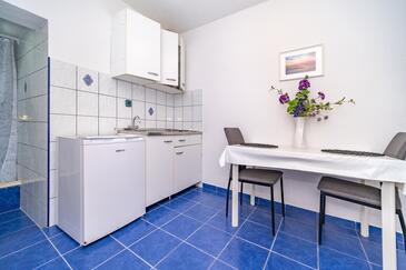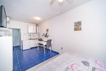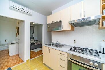 Ferienwohnung bietet Platz für 4 Gäste. Die Betten sind in Schlafzimmern, die es 2 gibt, innerhalb einer Gesamtfläche von 39m2, angeordnet. Die Gäste haben eine eigene Terrasse zur Verfügung, auf der sie in warmen Sommernächten genießen können. Es ist erlaubt, Speisen auf dem Gemeinschafts-Grill vorzubereiten.