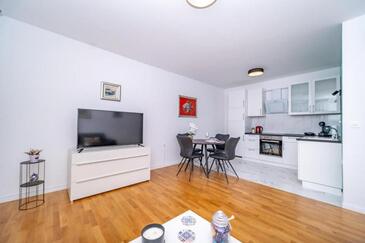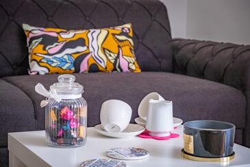 Ferienwohnung bietet Platz für 4 Gäste. Die Betten sind in Schlafzimmern, die es 1 gibt, und in Wohnzimmer, innerhalb einer Gesamtfläche von 42m2, angeordnet. Die Gäste haben eine eigene Terrasse zur Verfügung, auf der sie in warmen Sommernächten genießen können.