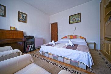 Ferienwohnung bietet Platz für 5 Gäste. Die Betten sind in Schlafzimmern, die es 3 gibt, innerhalb einer Gesamtfläche von 55m2, angeordnet. Die Gäste haben eine eigene Terrasse zur Verfügung, auf der sie in warmen Sommernächten genießen können. Das Apartment bietet Meerblick. Es ist erlaubt, Speisen auf dem Gemeinschafts-Grill vorzubereiten.