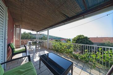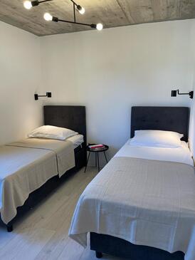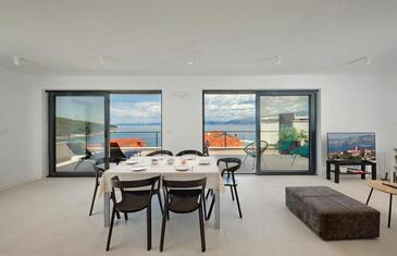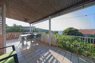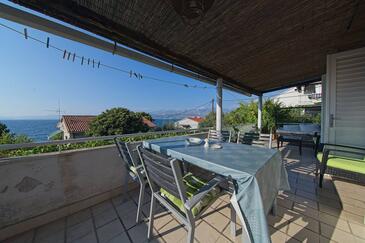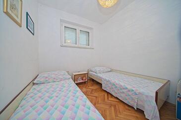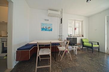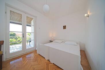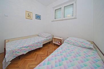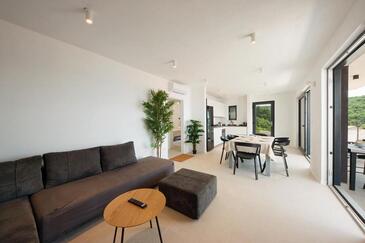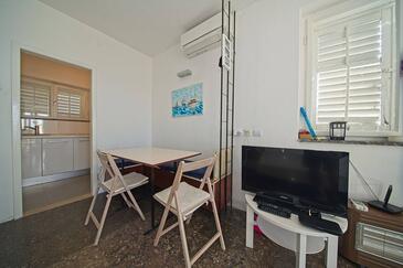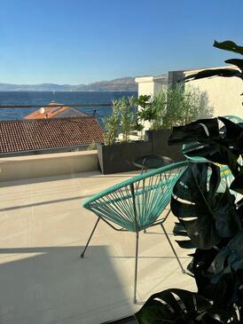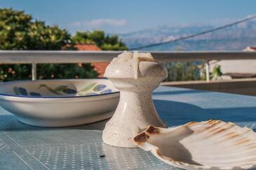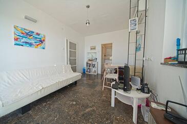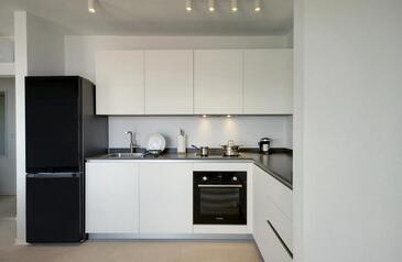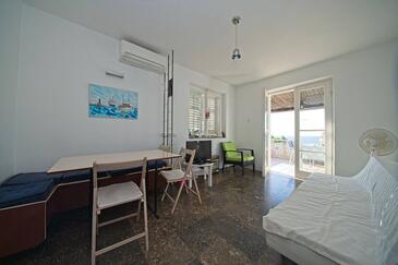 Ferienwohnung bietet Platz für 4 Gäste. Die Betten sind in Schlafzimmern, die es 2 gibt, innerhalb einer Gesamtfläche von 46m2, angeordnet. Die Gäste haben eine eigene Terrasse zur Verfügung, auf der sie in warmen Sommernächten genießen können. Das Apartment bietet Meerblick. Es ist erlaubt, Speisen auf dem Gemeinschafts-Grill vorzubereiten.
