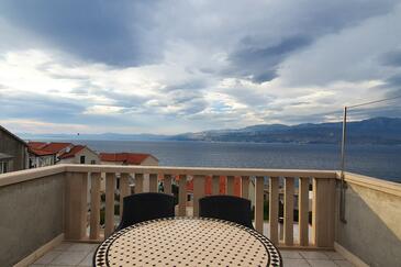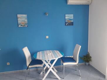 Ferienwohnung bietet Platz für 3 Gäste. Die Betten sind in Schlafzimmern, die es 1 gibt, und in Wohnzimmer, innerhalb einer Gesamtfläche von 43m2, angeordnet. Die Gäste haben eine eigene Terrasse zur Verfügung, auf der sie in warmen Sommernächten genießen können. Das Apartment bietet Meerblick. Es ist erlaubt, Speisen auf dem Gemeinschafts-Grill vorzubereiten.