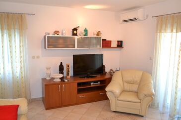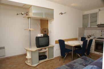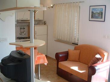 Ferienwohnung bietet Platz für 2 Gäste. Die Betten sind in Schlafzimmern, die es 1 gibt, innerhalb einer Gesamtfläche von 35m2, angeordnet. Die Gäste haben eine eigene Terrasse zur Verfügung, auf der sie in warmen Sommernächten genießen können. Das Apartment bietet Meerblick. Es ist erlaubt, Speisen auf dem Gemeinschafts-Grill vorzubereiten.