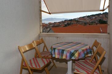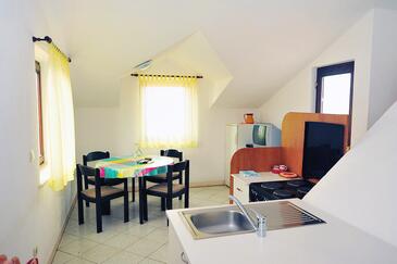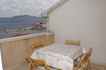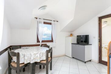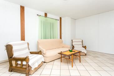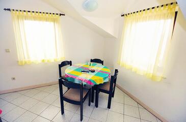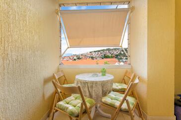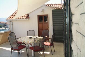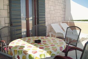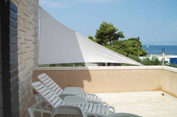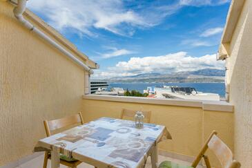 Ferienwohnung bietet Platz für 5 Gäste. Die Betten sind in Schlafzimmern, die es 3 gibt, innerhalb einer Gesamtfläche von 87m2, angeordnet. Die Gäste haben eine eigene Terrasse zur Verfügung, auf der sie in warmen Sommernächten genießen können. Das Apartment bietet Meerblick. Es ist erlaubt, Speisen auf dem Gemeinschafts-Grill vorzubereiten.