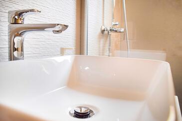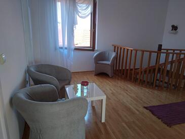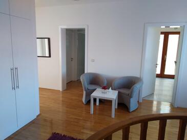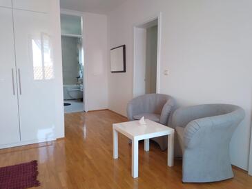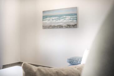 Ferienwohnung bietet Platz für 4 Gäste. Die Betten sind in Schlafzimmern, die es 2 gibt, innerhalb einer Gesamtfläche von 64m2, angeordnet. Die Gäste haben eine eigene Terrasse zur Verfügung, auf der sie in warmen Sommernächten genießen können. Das Apartment bietet Meerblick. Es ist erlaubt, Speisen auf dem Gemeinschafts-Grill vorzubereiten.