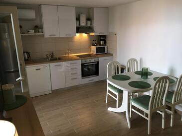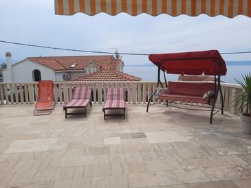 Ferienwohnung bietet Platz für 4 Gäste. Die Betten sind in Schlafzimmern, die es 2 gibt, innerhalb einer Gesamtfläche von 62m2, angeordnet. Die Gäste haben eine eigene Terrasse zur Verfügung, auf der sie in warmen Sommernächten genießen können. Das Apartment bietet Meerblick. Es ist erlaubt, Speisen auf dem Gemeinschafts-Grill vorzubereiten.